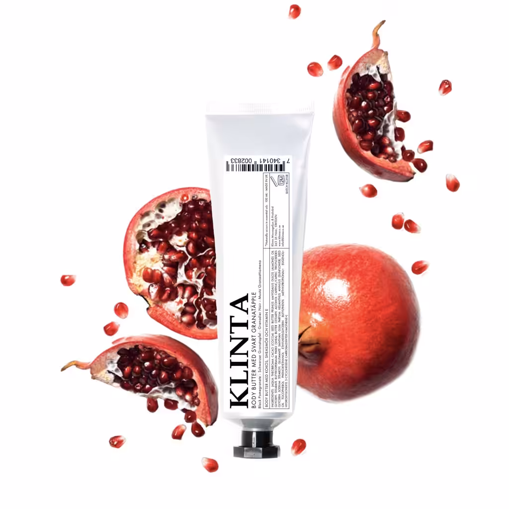 Svart Granatäpple: Ingredients: (Aqua Theobroma Cacao (Cocoa) Seed Butter Prunus Amygdalus Dulcis (Almond) Oil Glyceryl Stearate Butyrospermum Parkii (Shea) Butter Cetearyl Alcohol Caprylic/Capric Trigylcerides Glycerin Sodium Stearoyl Glutamate Xanthan Gum Parfum Helianthus Annuus (Sunflower) Seed Oil Tocopherol Phenoxyethanol Ethylhexylglycerin Butylphenyl Methylpropional+ Eugenol+ Hydroxyisohexyl 3-Cyclohexene Carboxaldehyde+Limonene+)
