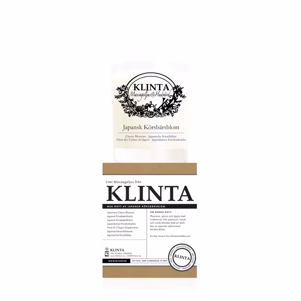 Klinta Massageljus är helt vegetabiliska och giftfria ljus med den extra bonusen att de är massageljus som kan användas på hela kroppen. Den vegetabiliska basen har blandats med aromoljor av högsta kvalitet och tappats i återvunnet glas. Alla Klintas produkter genomgår en hög kvalitetskontroll för att säkerställa rättvisa och älskade produkter.