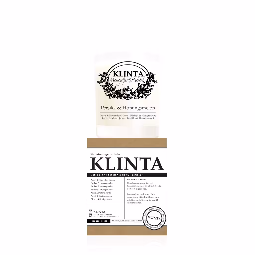 Klinta Massageljus är helt vegetabiliska och giftfria ljus med den extra bonusen att de är massageljus som kan användas på hela kroppen. Den vegetabiliska basen har blandats med aromoljor av högsta kvalitet och tappats i återvunnet glas. Alla Klintas produkter genomgår en hög kvalitetskontroll för att säkerställa rättvisa och älskade produkter.