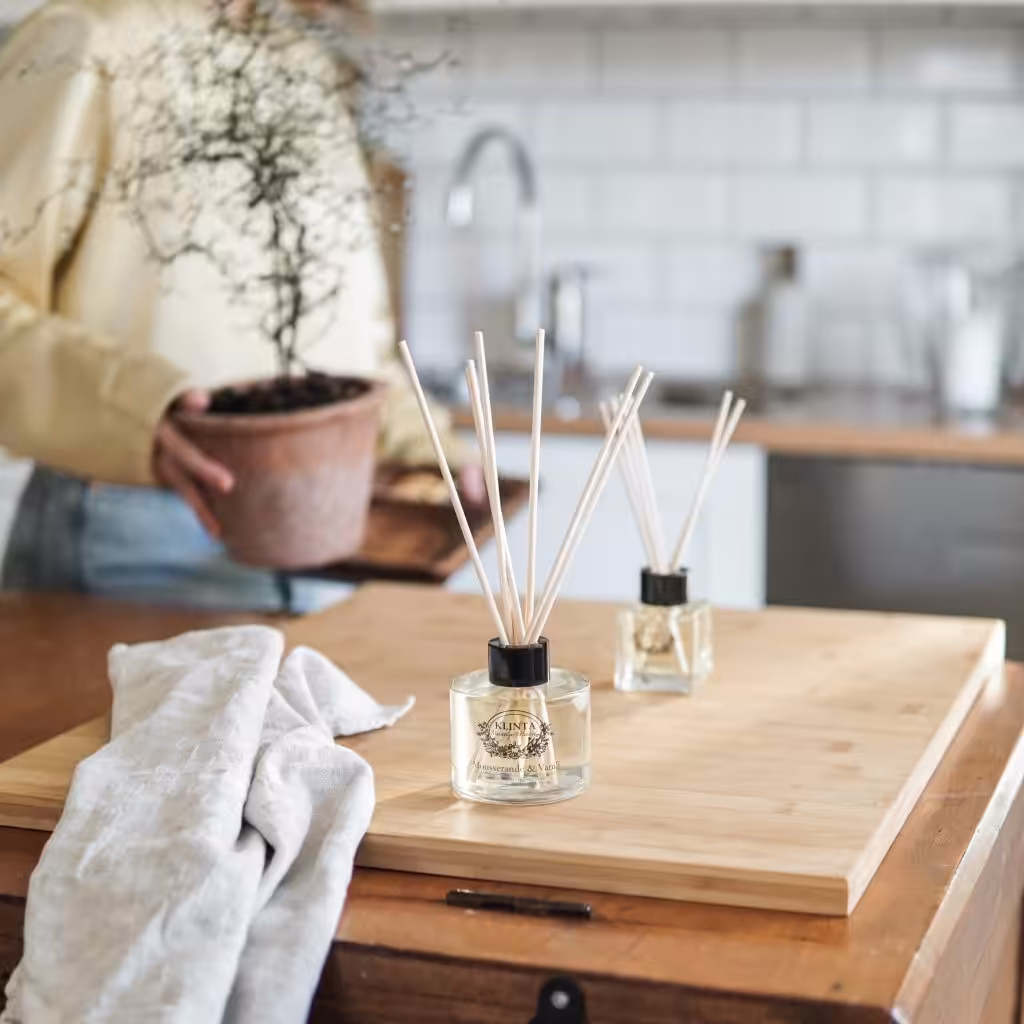 Ren lavendelolja blandas med söt och citrusig apelsinblomma och ger en nygammal, fräsch och pigg doft. Apelsinblomma & Lavendel har varit med sedan dag ett hos Klinta och är en riktig klassiker!