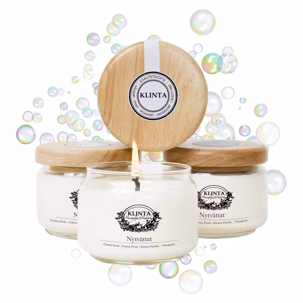 *Ja, det borde vara självklart att det inte finns någonting annat än det som står i innehållsförteckningen! Faktum är att många ljus innehåller färgämnen, blekmedel, animaliska rester, petroleum, tändvätska m.m och det syns dåligt i ingredienslistan. Vi på Klinta försöker vara så transparenta som möjligt i våra produktbeskrivningar så att du kan göra dina egna val.
