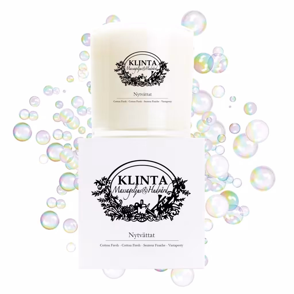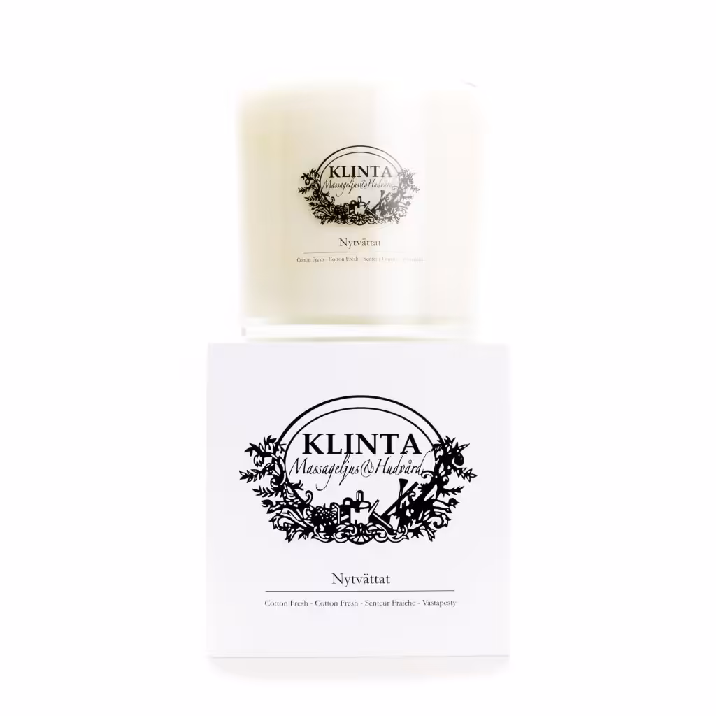 Klinta Massageljus är helt vegetabiliska och giftfria ljus med den extra bonusen att de är massageljus som kan användas på hela kroppen. Den vegetabiliska basen har blandats med aromoljor av högsta kvalitet och tappats i återvunnet glas. Alla Klintas produkter genomgår en hög kvalitetskontroll för att säkerställa rättvisa och älskade produkter.