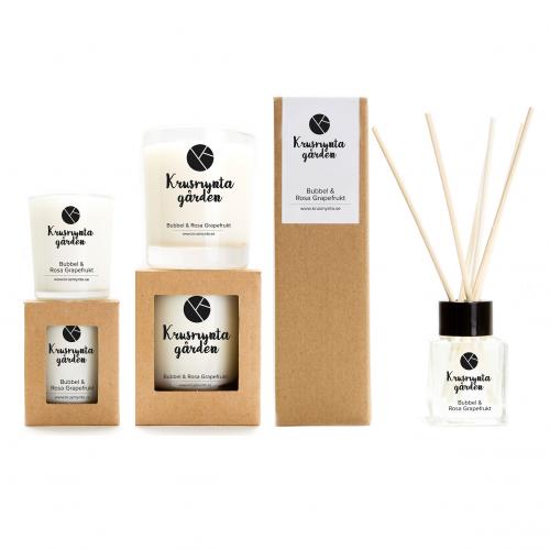 We also offer private label products from as little as 72 pieces per fragrance. Our most simple offer is a standard 45 hour Klinta Candle (20cl) featuring a label design of your choice. This has been very popular with our Swedish retailers and is an incredibly simple way of offering your customers a unique and exclusive product. We can also offer fully bespoke candles, with specially made glass and personalised fragrances to bespoke boxes and unique details. Below are some examples of previous projects.If you'd like more information on how to create your own candle, reed diffusers or any other product in our range, please contact Simon at simon@klintaco.se.