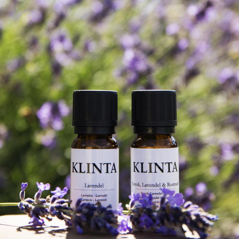 The difference between an essential oil and a perfume oil: Essential oils are drawn directly from the plant world as with our lavender fragrance where lavender flowers have been distilled down to a pure, natural essential oil. Or our lemongrass fragrance where the essential oil is the result of cold-pressing the raw material. Essential oils can be used in aromatherapy. Lavender for example is relaxing while citrus is uplifting. A huge amount of raw material is needed to produce essential oils: a 10ml bottle of Lavender Scented Oil requires 1.3kg of lavender flowers! And the fragrances are fantastic. Essential oils are often used in cuisine, confectionary, perfumes and, like we do at Klinta, in candles and diffusers! Our perfume oils are a blend of many different ingredients, including essential oils, that together create a fragrance that arouses a feeling of something, for example Bubbly & Pink Grapefruit. It is very difficult, to say the least, to distill sparkling wine to obtain an essential fragrance! So instead we mix a number of different components, sometimes 100s of them, that together give a sense of ‘Bubbly’ and of luxury. Never use the oil directly on the skin. It may have been made for skincare but must always be diluted.