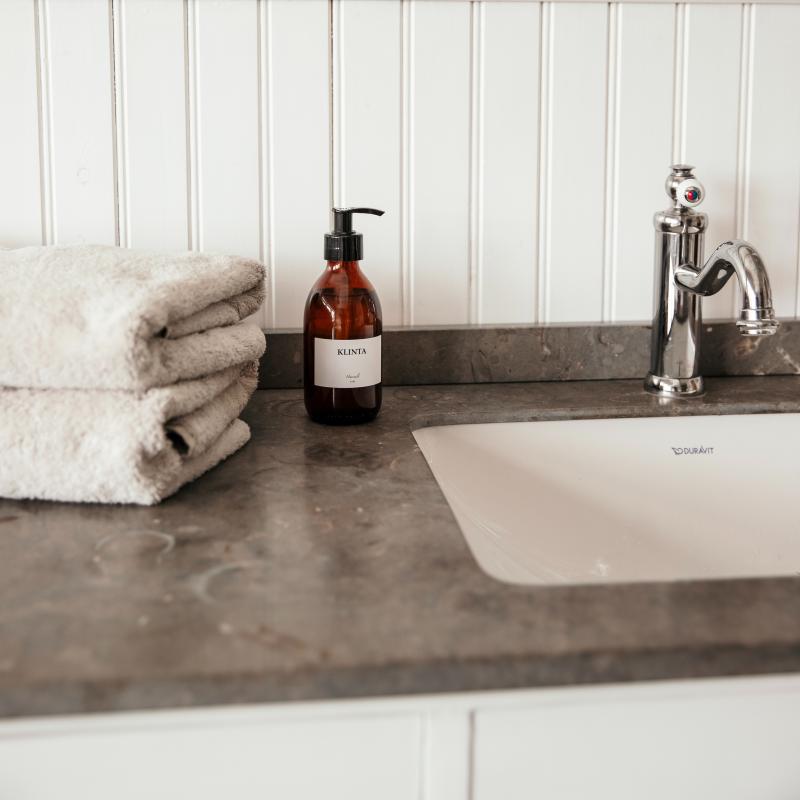 Klintas Tvål har samma milda och rena doftegenskaper som Klintas övriga produkter och vi väljer att gå samma väg vi hittills gjort, nämligen den naturliga och den miljövänliga. Klintas Tvål som fungerar både för ansikte, händer och kropp är rik och lyxig. Den absorberas lätt utan att lämna fläckar och är snäll mot känslig hud. Klintas tvål är tillverkad med en alkoholfri, icke brännbar naturlig och vegetabilisk bas fri från parabener, som sen har blandats med aromoljor av högsta kvalitet. Flaskan är av återvunnet glas och går fint att återanvända eller återvinna. Alla Klintas produkter genomgår en hög kvalitetskontroll för att säkerställa rättvisa och älskade produkter.