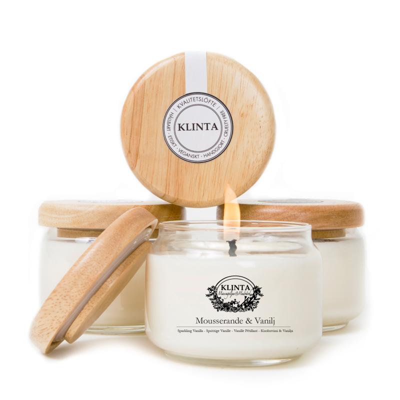 * You’d think that there was nothing more to it than what you see in the ingredient list! But the fact is that many candles contain dyes (because some people think colour is more fun), bleach (for the candles to be exactly the same level of white), animal remains (all our candles are vegan), petroleum (normal), paraffin (in the wick) and more – none of which is easy to see in the list of ingredients. At Klinta we try to be as transparent as possible in our product descriptions so that you can make your own choices.