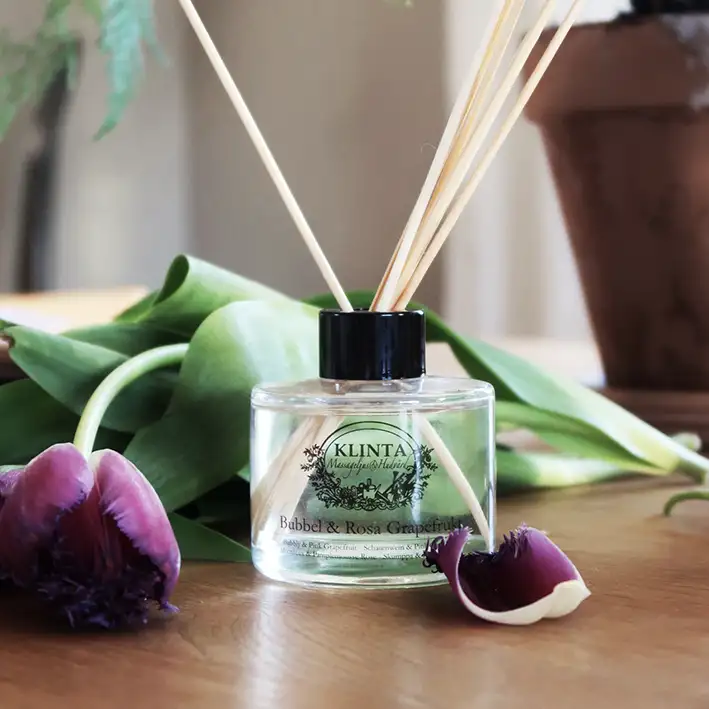 How to use reed diffusers: Reed diffusers are easy to use and a great complement to Klinta’s Massage Candles. Place the sticks upright in the oil. If you want less scent, use fewer sticks. If you want more scent, turn the sticks upside down from time to time. Then leave without any further maintenance.