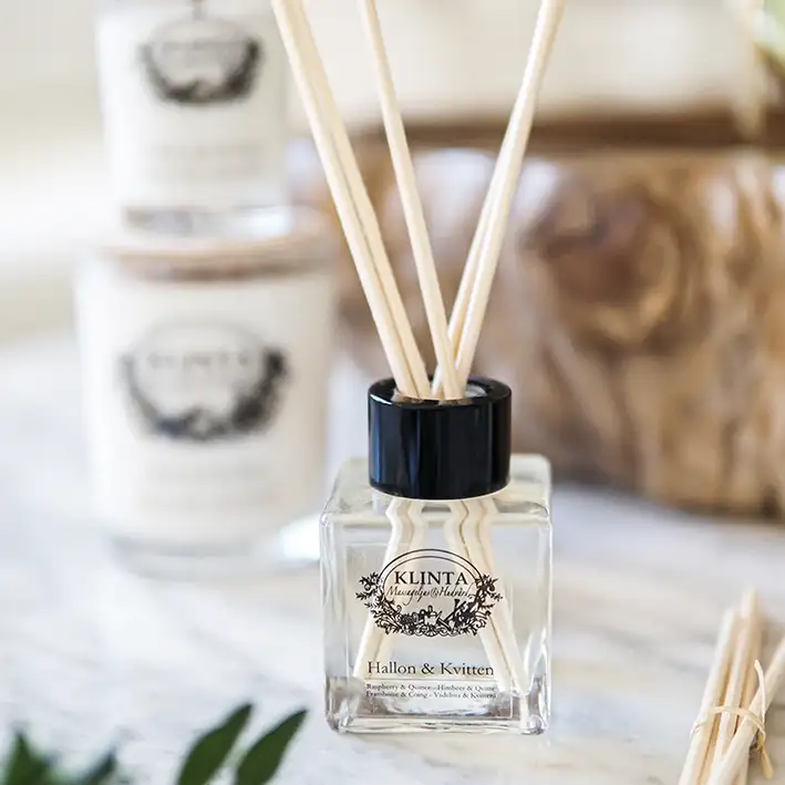 How to use reed diffusers: Reed diffusers are easy to use and a great complement to Klinta’s Massage Candles. Place the sticks upright in the oil. If you want less scent, use fewer sticks. If you want more scent, turn the sticks upside down from time to time. Then leave without any further maintenance.