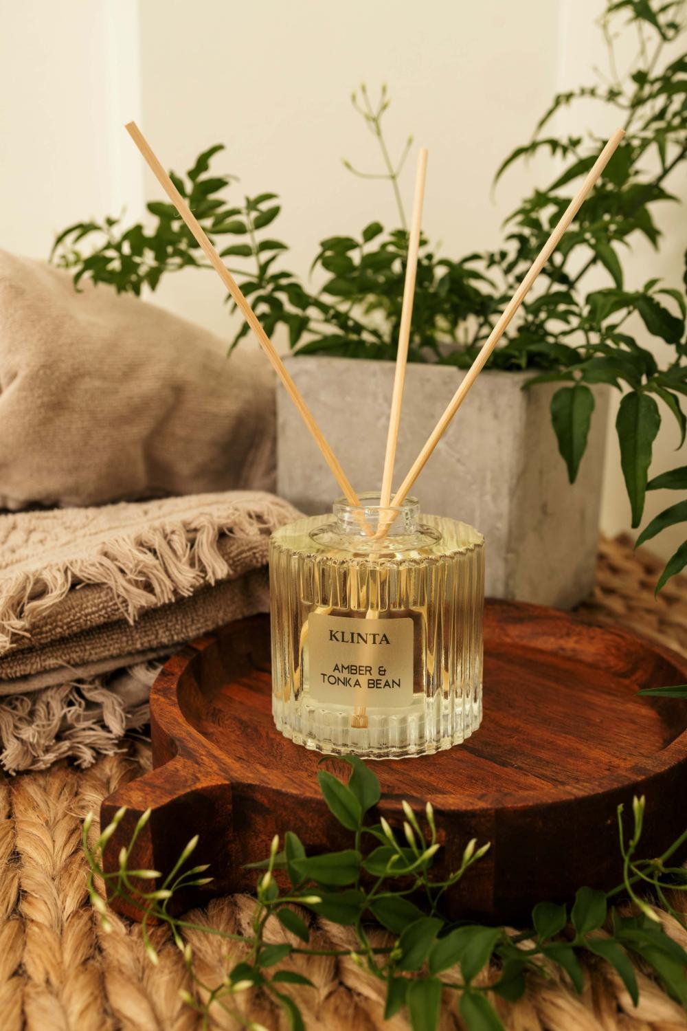 Klintas Doftpinnar har samma milda och rena doftegenskaper som Massageljusen och vi väljer att gå samma väg vi hittills gjort, nämligen den naturliga och den miljövänliga. Till skillnad från många andra doftpinnar som mestadels består av alkohol eller glykol har Klinta grävt lite djupare och hittat en vegetabilisk olja med lika goda doftbärande egenskaper som alkohol men utan den starkt alkoholhaltiga ångan. Klintas Doftpinnar baseras nämligen på olja från sojabönan en lättodlad och snabbväxande böna som är helt förnyelsebar. Sedan tillsätts det antingen eterisk olja eller doftolja.