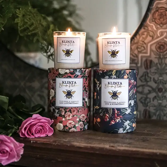 Inte bara ett vackert doftljus utan också ett blomsterkit med både jord och frön! Återanvänd glaset och så vårens första blommor!
