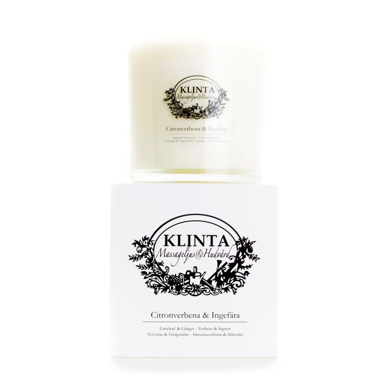 Klinta Massageljus är helt vegetabiliska och giftfria ljus med den extra bonusen att de är massageljus som kan användas på hela kroppen. Den vegetabiliska basen har blandats med aromoljor av högsta kvalitet och tappats i återvunnet glas. Alla Klintas produkter genomgår en hög kvalitetskontroll för att säkerställa rättvisa och älskade produkter.