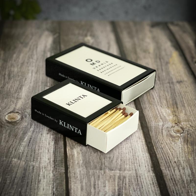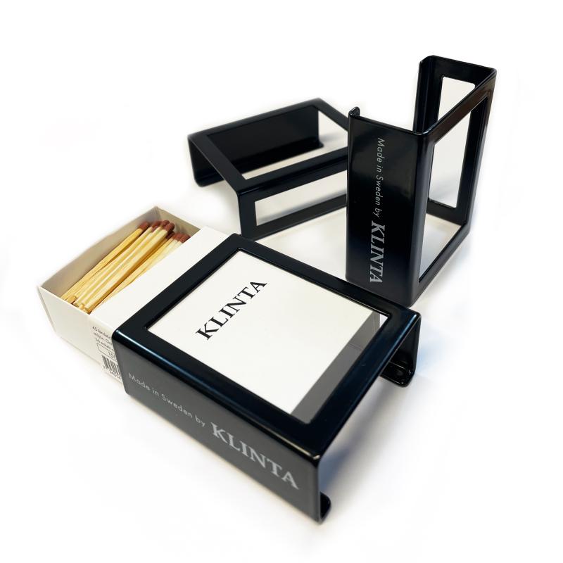 Metallfodralen ger tyngd till tändsticksasken och skapar en lyxig känsla. Förutom designen som ger askens design en vacker passepartout så skyddar den även din ask och hjälper dig att hålla reda på upp och ned. Och förstås, det blir ju vackrare också!