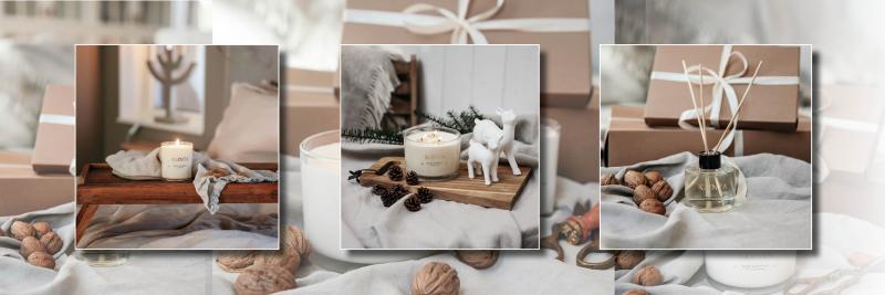 De tre dofterna vi valt för Julkollektionen är dels två som varit med oss tidigare - Apelsin & Kryddnejlika och Körsbär, Äpple & Kanel och sen en nykomling i Mandarin & Muskotnöt . Alla dessa tre dofter som är varma och mustiga, precis rätt för en kylig säsong och varma tillställningar.