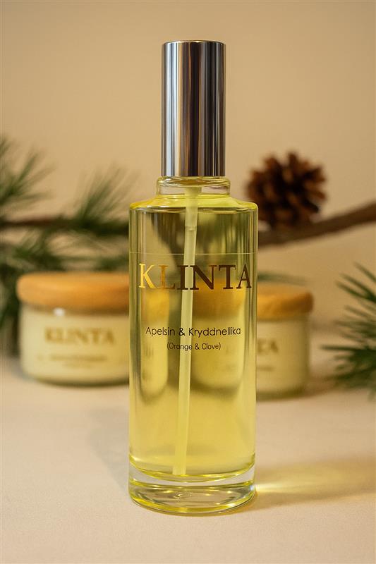 Klintas Rumsdoft har samma milda och rena doftegenskap som Klintas övriga produkter och vi väljer att gå samma väg vi hittills gjort, nämligen den naturliga och den miljövänliga. Klintas Rumsdoft är tillverkad med en alkoholfri, icke brännbar naturlig och vegetabilisk bas som sen har blandats med aromoljor av högsta kvalitet för att få rummen att dofta fantastiskt. Flaskan är av återvunnet glas och går fint att återanvända eller återvinna. Alla Klintas produkter genomgår en hög kvalitetskontroll för att säkerställa rättvisa och älskade produkter. Två eller tre spritsar räcker för att doftsätta ett helt rum.