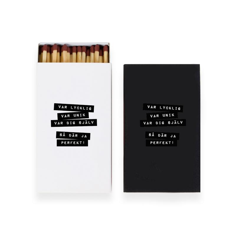 Denna storleken kallar vi för stor och den mäter 110x65x20 mm. Den innehåller ca 45 tändstickor som är 95 mm långa.